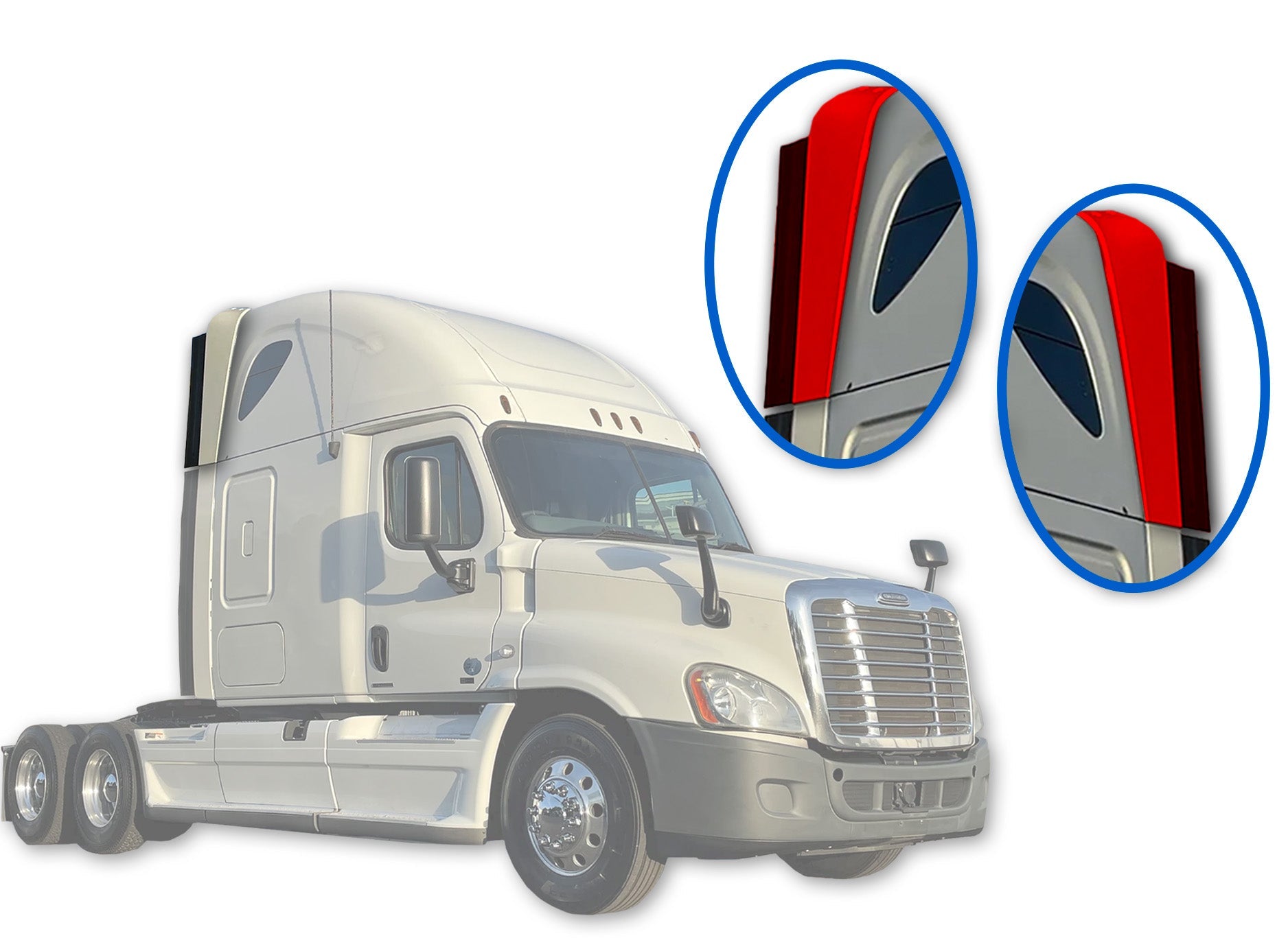 Top Cabin Wing Fairings w/ Stripe Narrow Version Set 2008-2017 Freightliner Cascadia