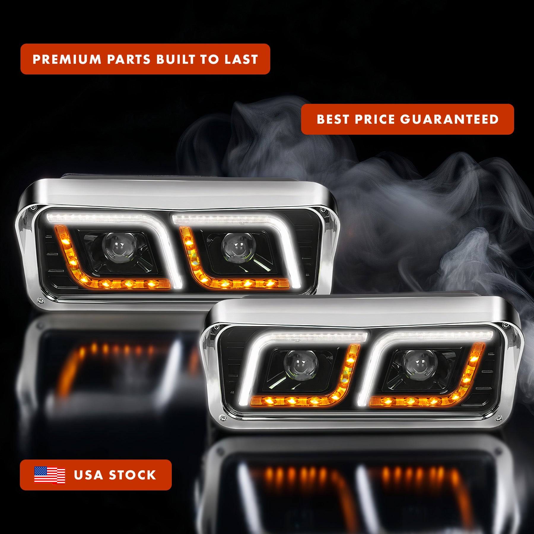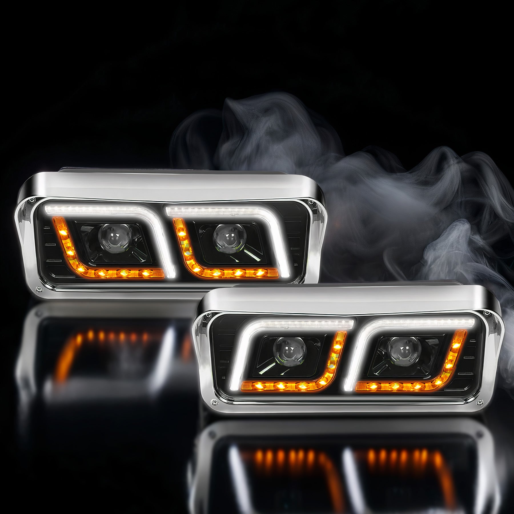 Headlights LED DRL Dual Black Set Freightliner Classic