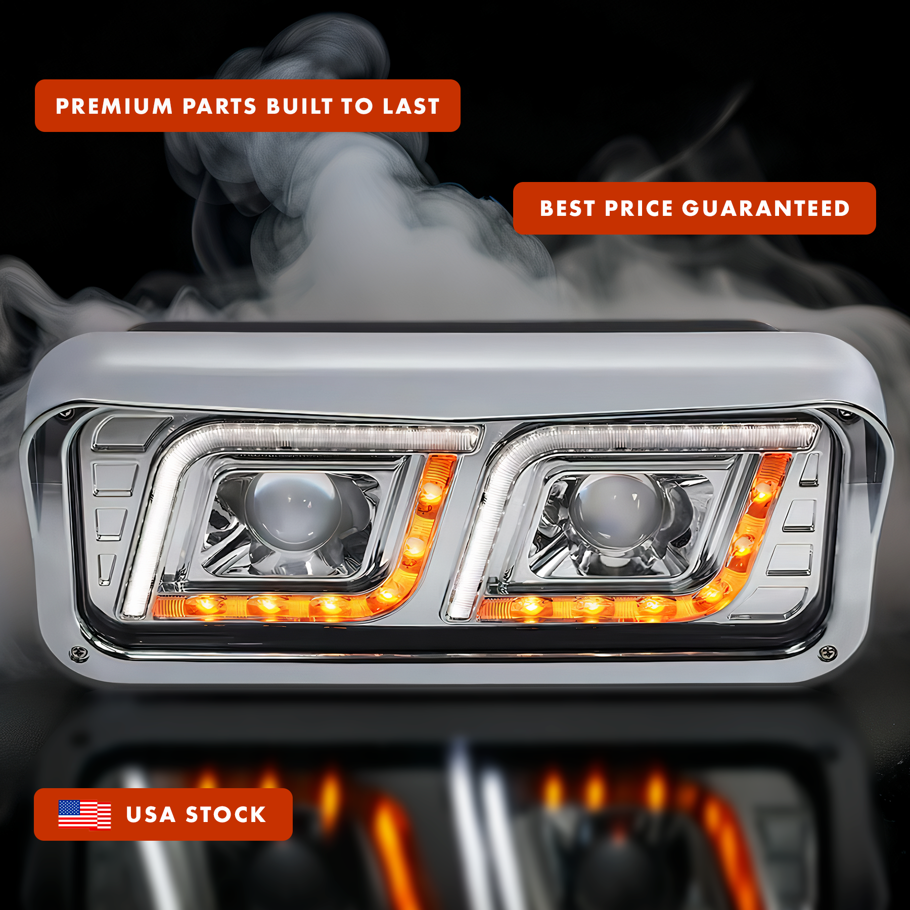LED DRL DUAL Chrome Projector Headlight (Driver Left Side) for FREIGHTLINER CLASSIC