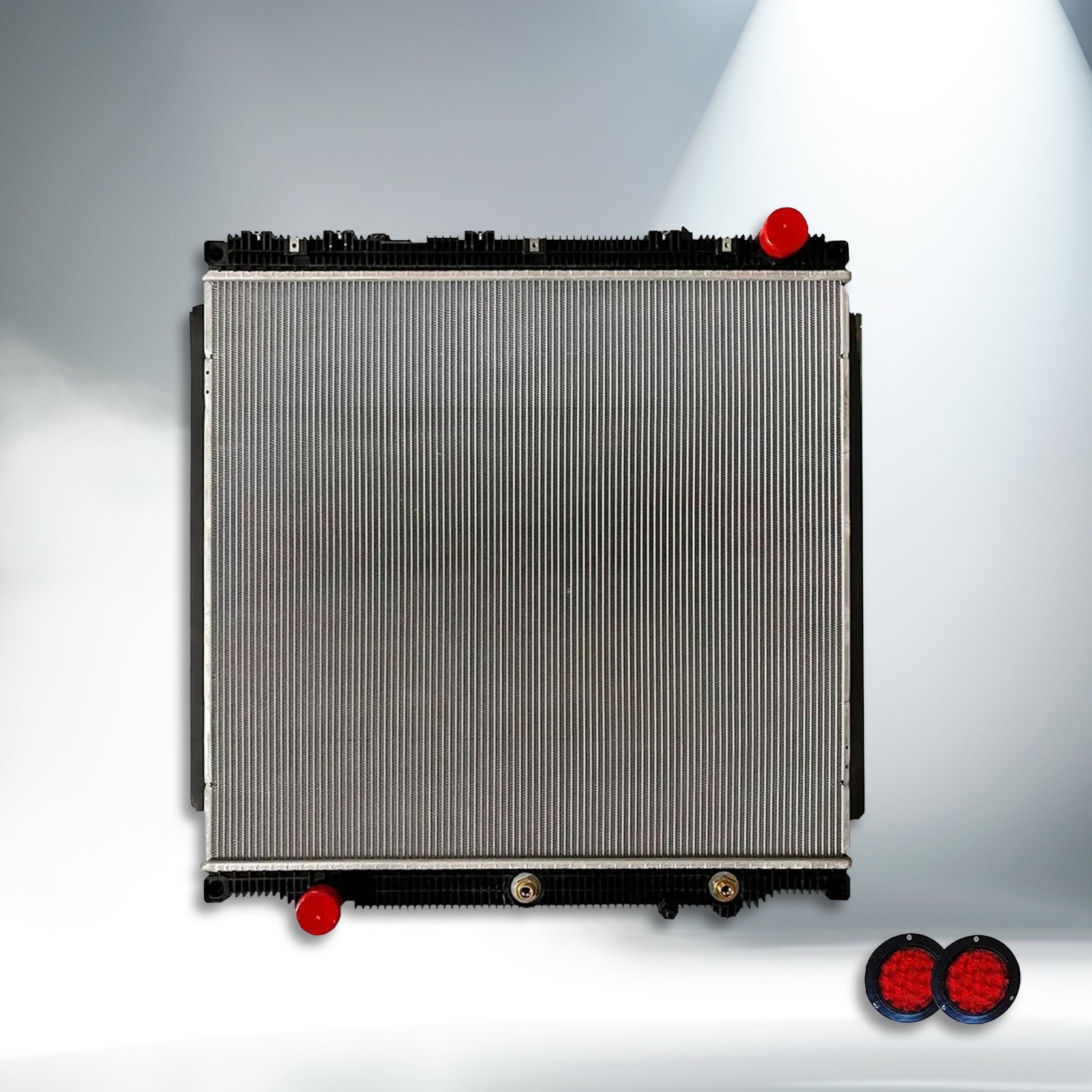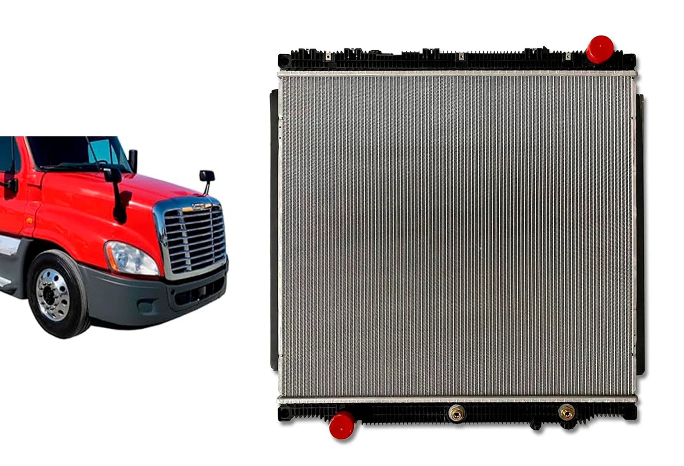 KOZAK Replacement Radiator (TXE1003849D) for Freightliner Cascadia 2017 & Newer, WITHOUT Frame PLUS Freightliner Logo, 2x22" Windshield Wipers, License Plate Frame, 2x Trailer Tail Lights and Vest