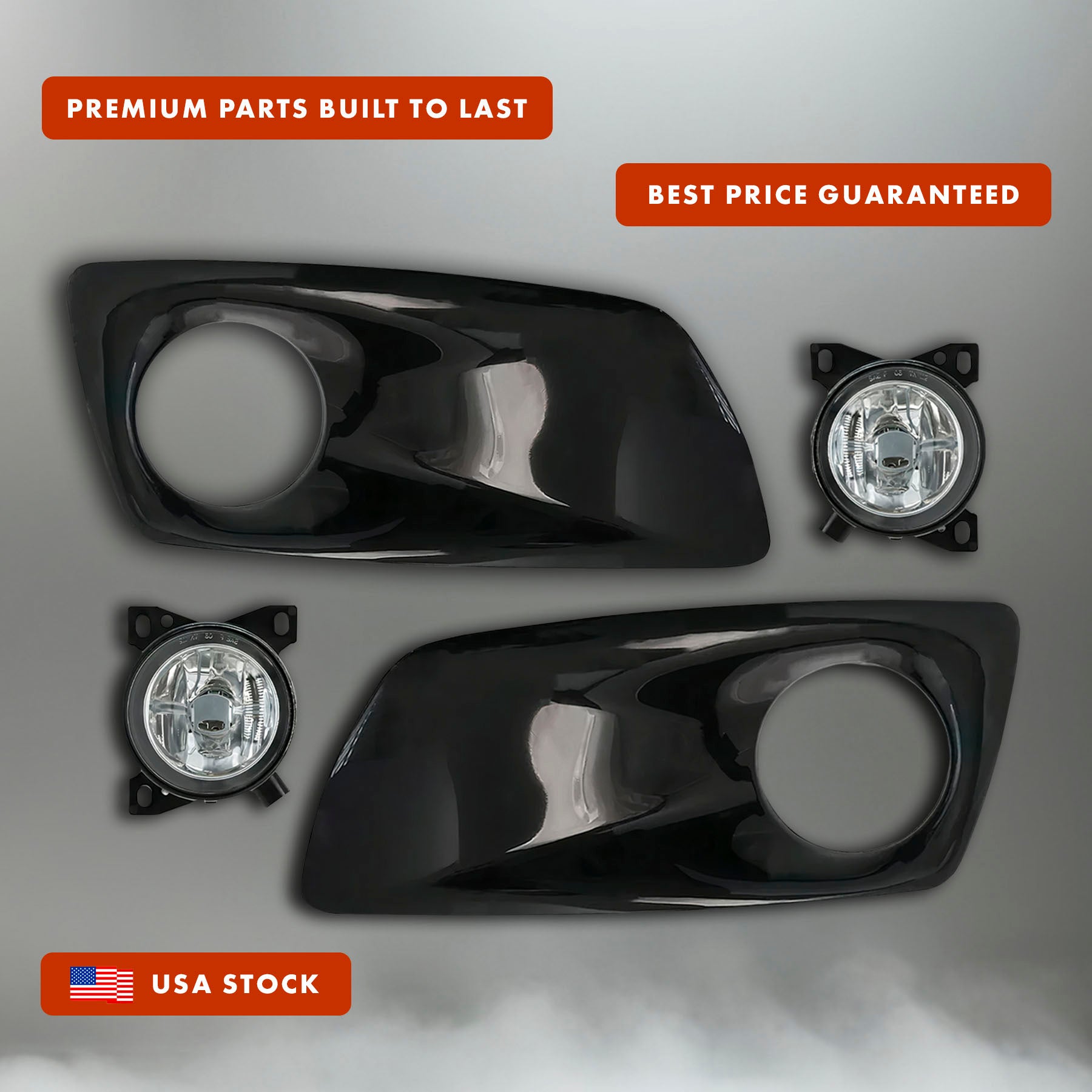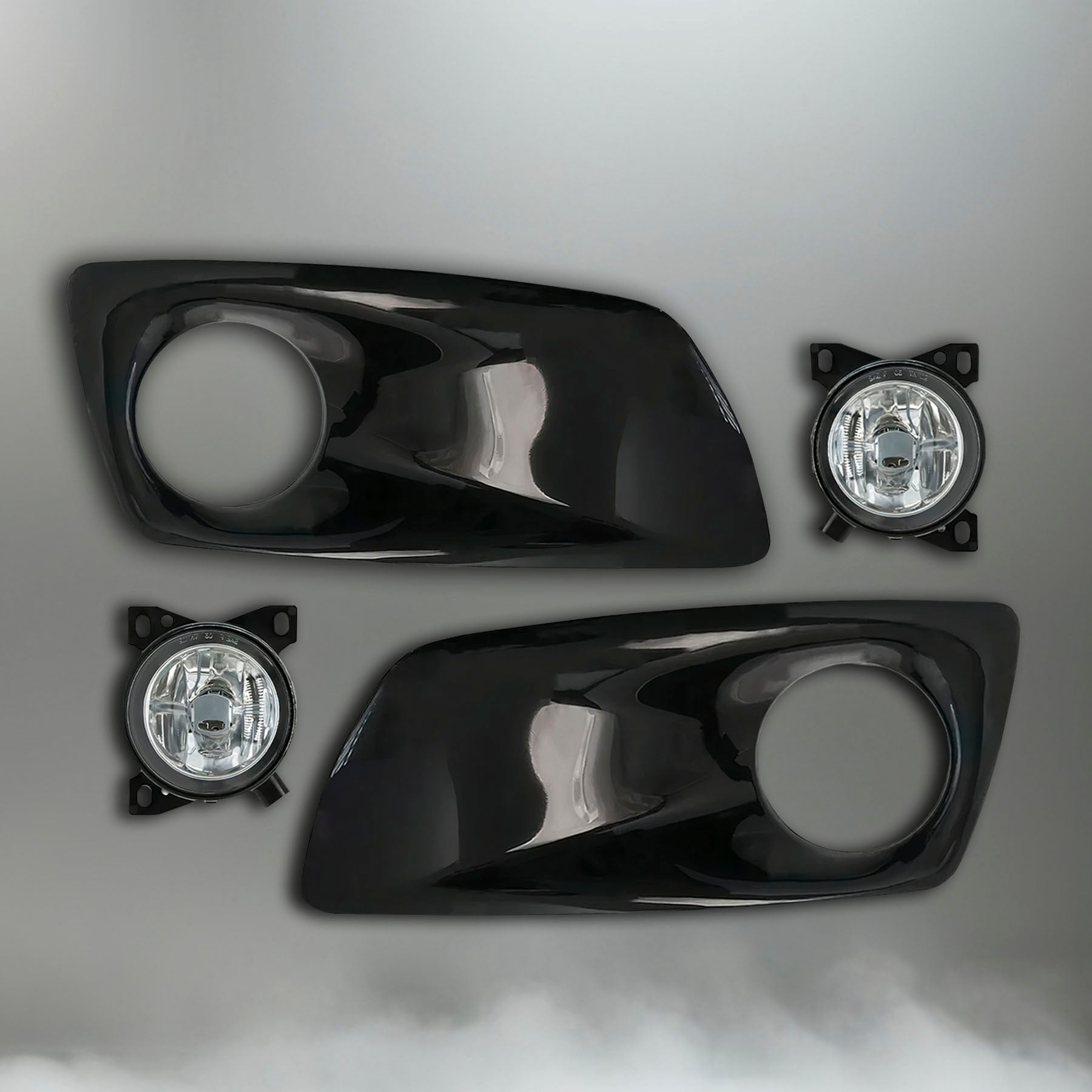 - Includes black plastic fog light bezels and fog light lamps for both right passenger and left driver sides.