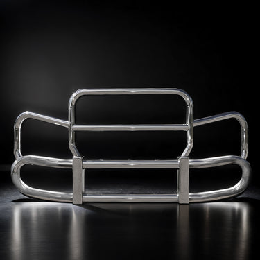 HERD Guard 300 series semi truck grill guards are constructed from stainless steel for lasting corrosion resistance. This model comes with a bright, polished finish