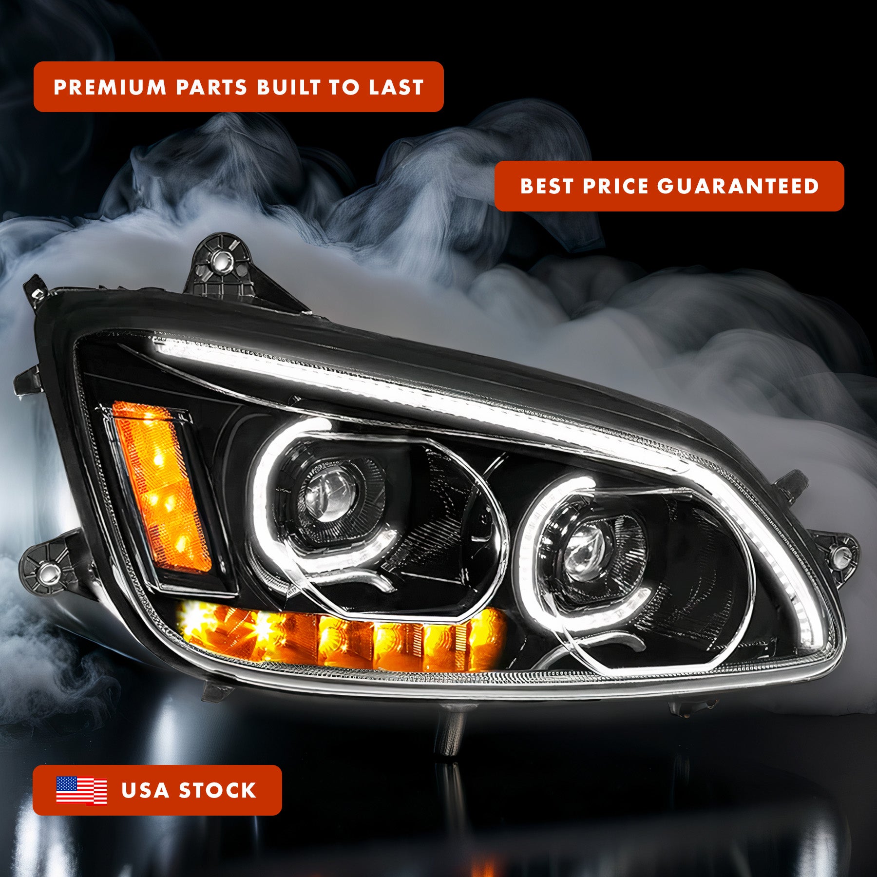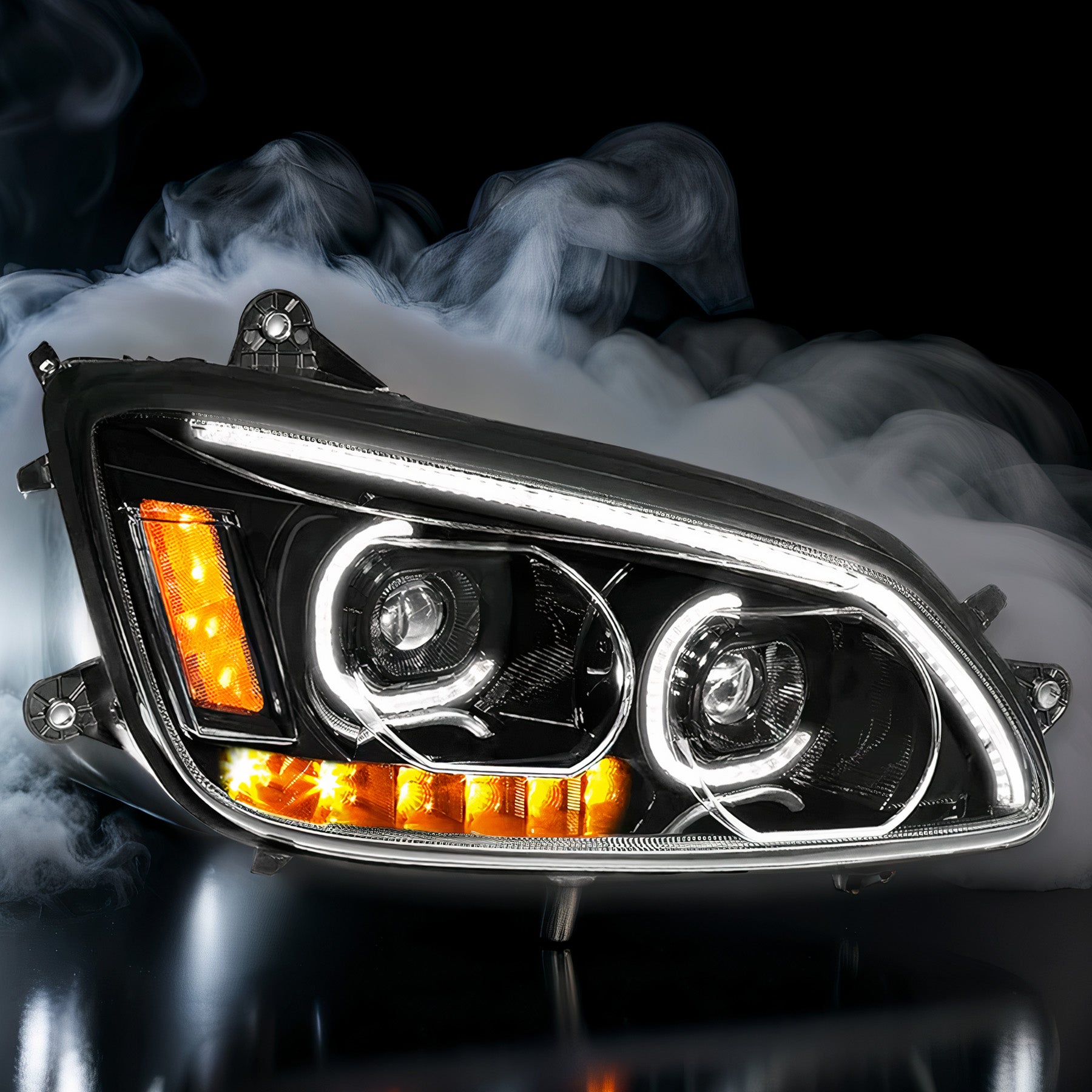 Headlight LED Black with Turn Signal Dual Passenger 2008-2018 Kenworth T660