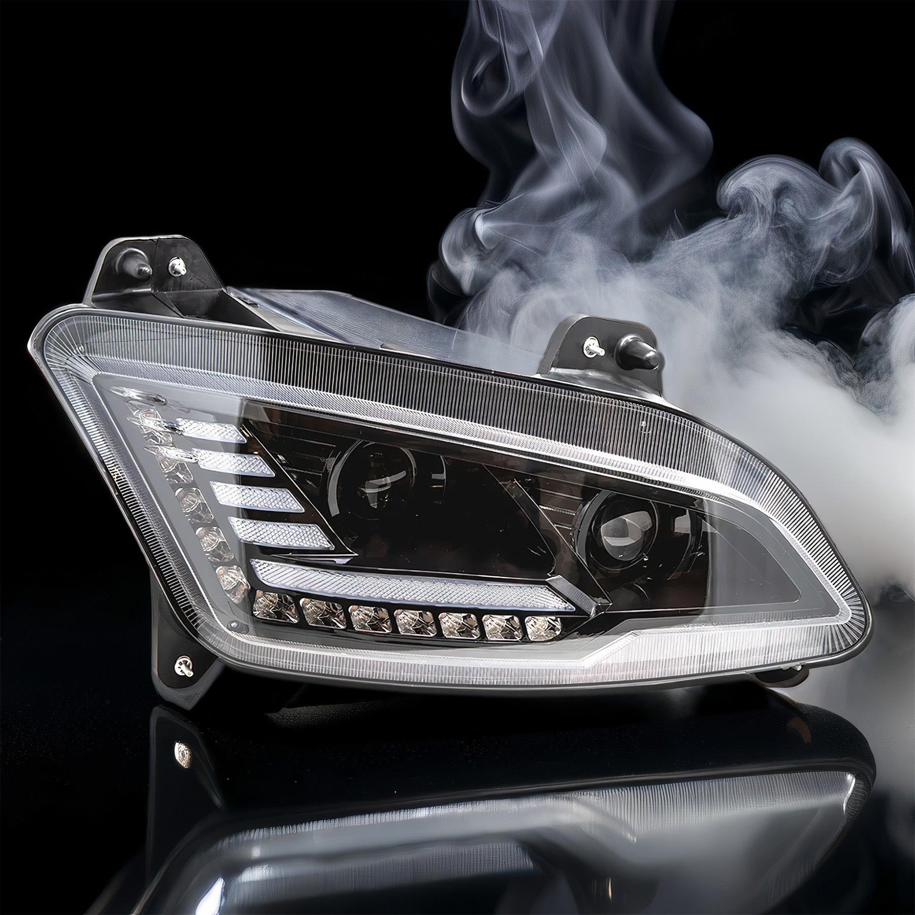 • The black housing not only offers a modern look but also houses advanced lighting technology for improved road visibility and safety