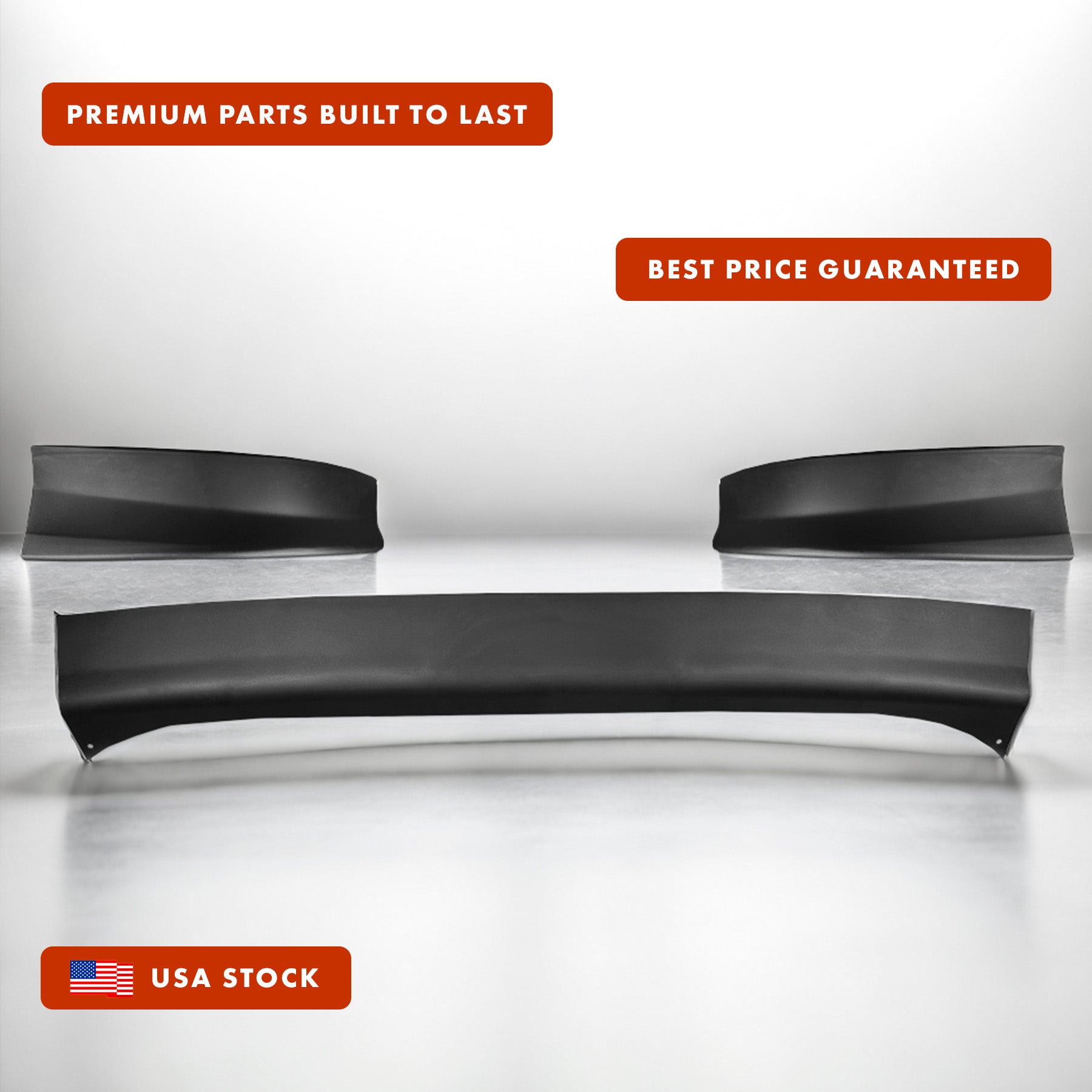 • Complete Bumper Extension Set: Includes center bumper extension, left driver-side extension, and right passenger-side extension
