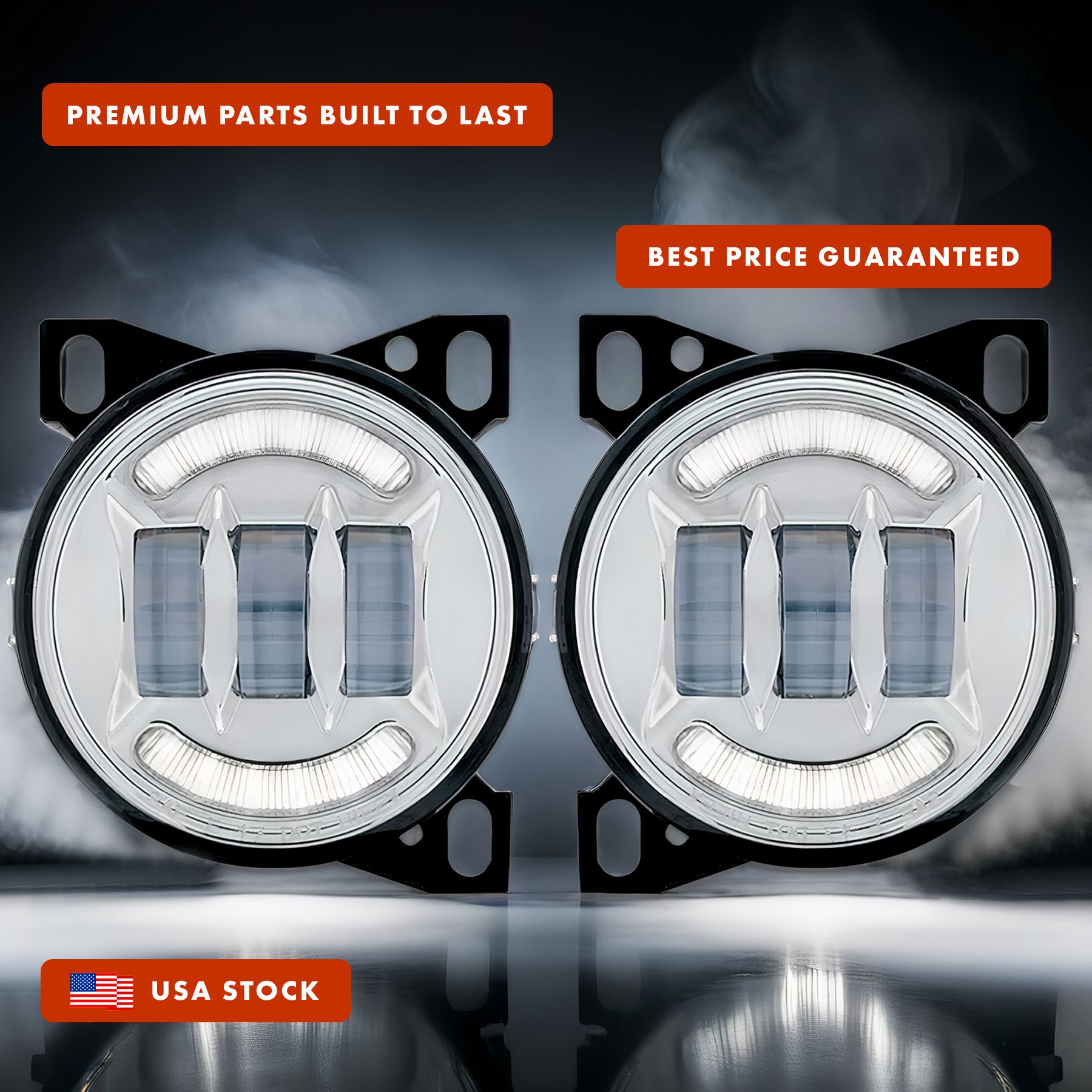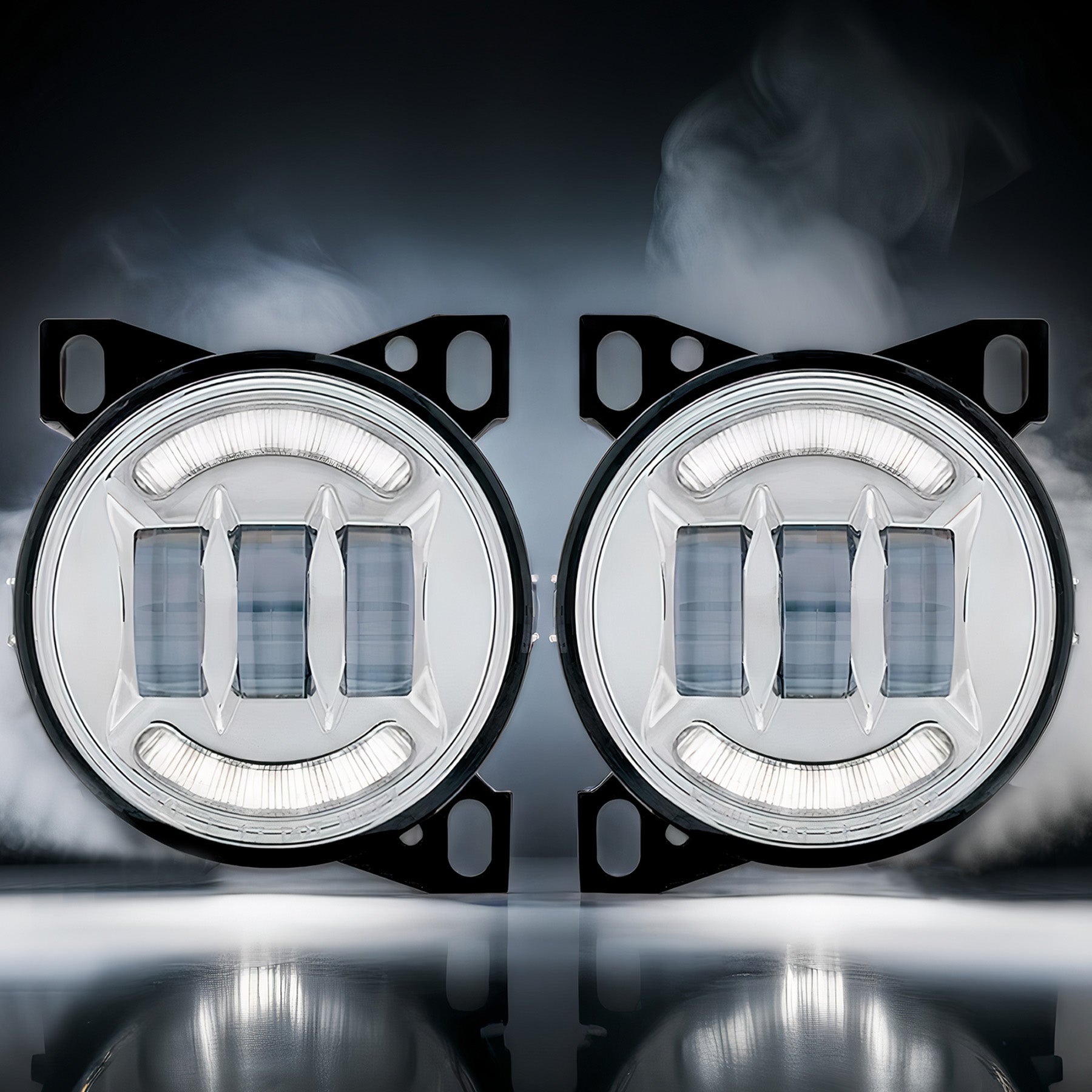 Full LED Fog Lights Lamp w/LED Arches High Power Pair Set