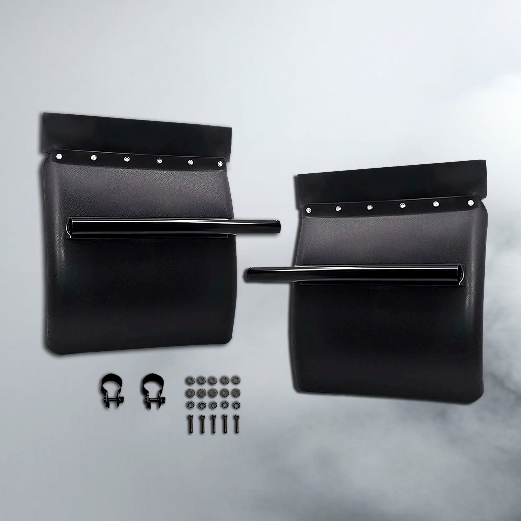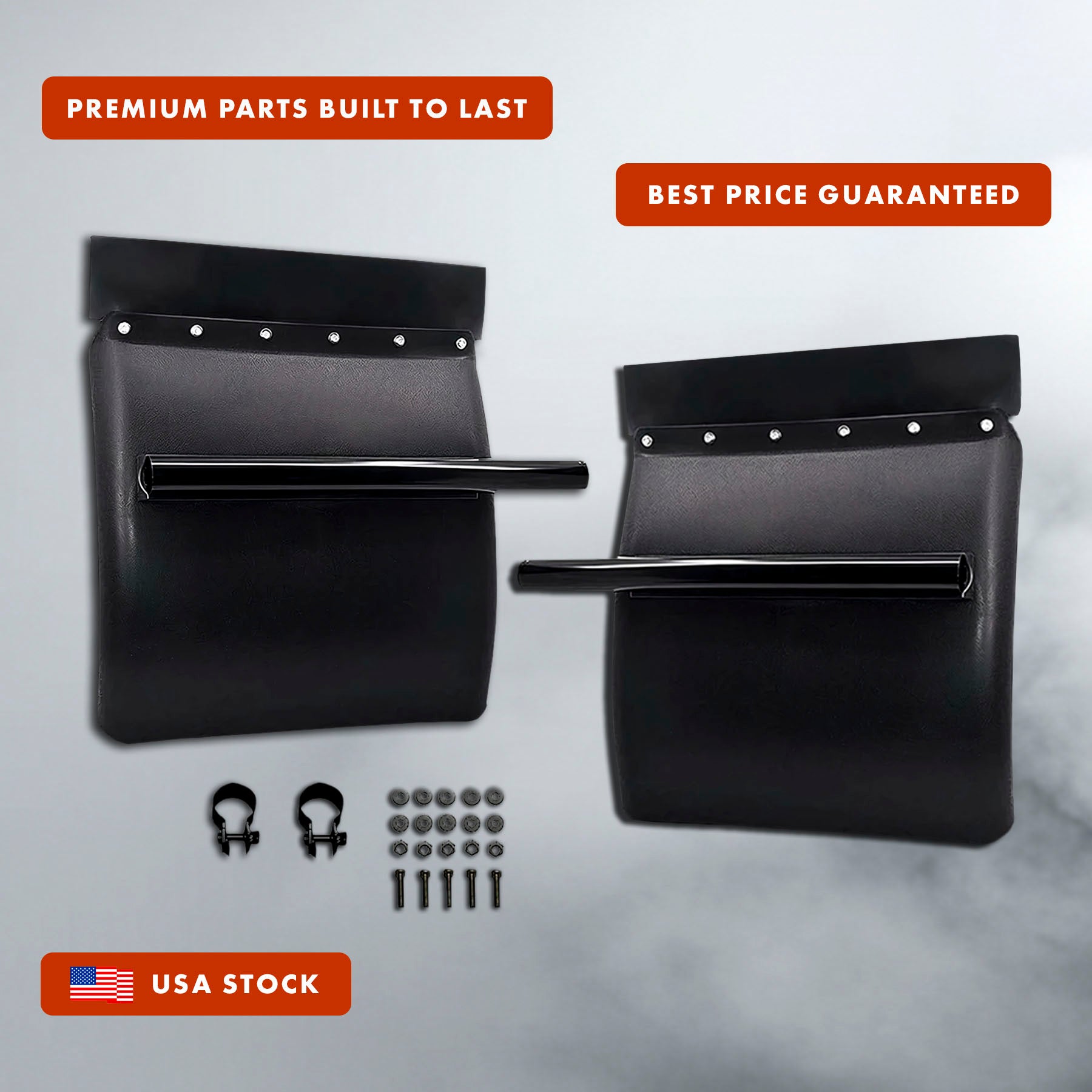 • Durable and reliable in various weather conditions Top black mud flap, round tube support, and ALL other mounting accessories are included