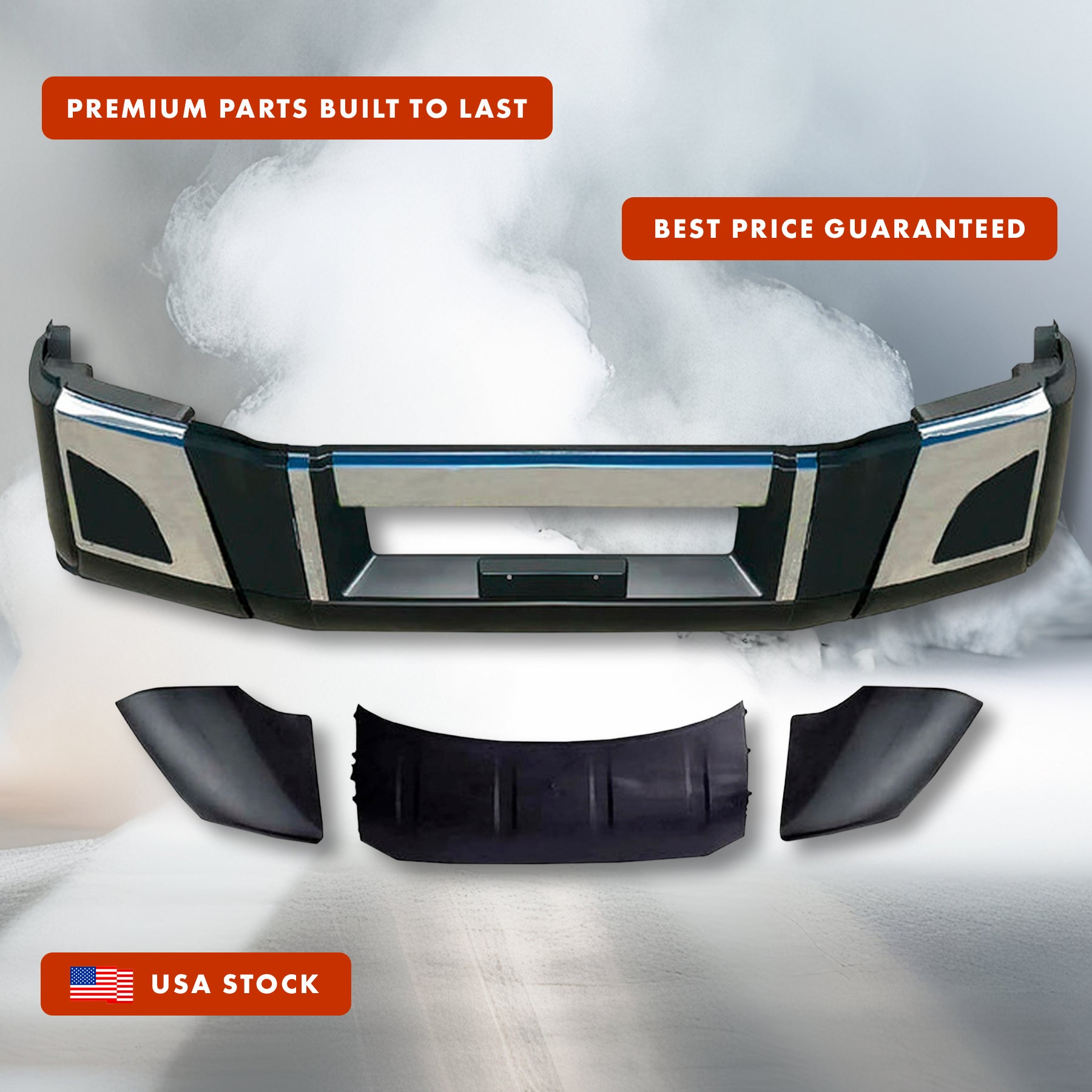 Bumper Set W/o Fog Holes Chrome Trim & Air Flow Deflector 2018+ Volvo VNL VNR