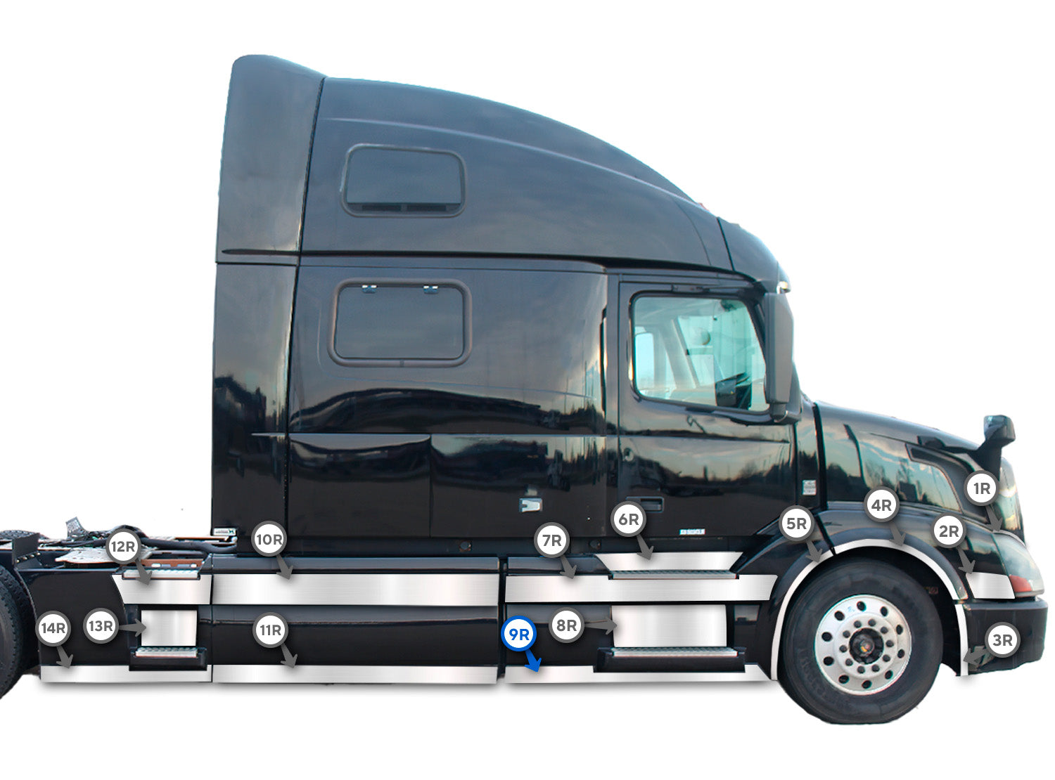 Compatible with Volvo VNL 2004–2017 (Right Side 9R) – Designed to seamlessly match the front fairing panel on the passenger (right) side, ensuring OEM-like installation and appearance.