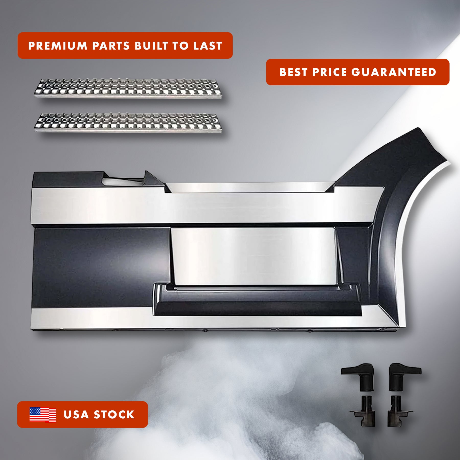 - Includes a set of handles, 2x Aluminum Steps, 5x ChromeTrim, Bracket
