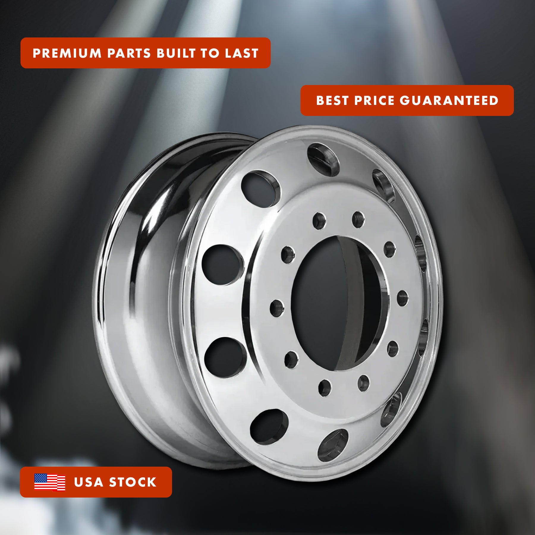 Forged Aluminum Wheel 22.5" x 8.25" 10 Lug on 285.75 mm Semi-Polished