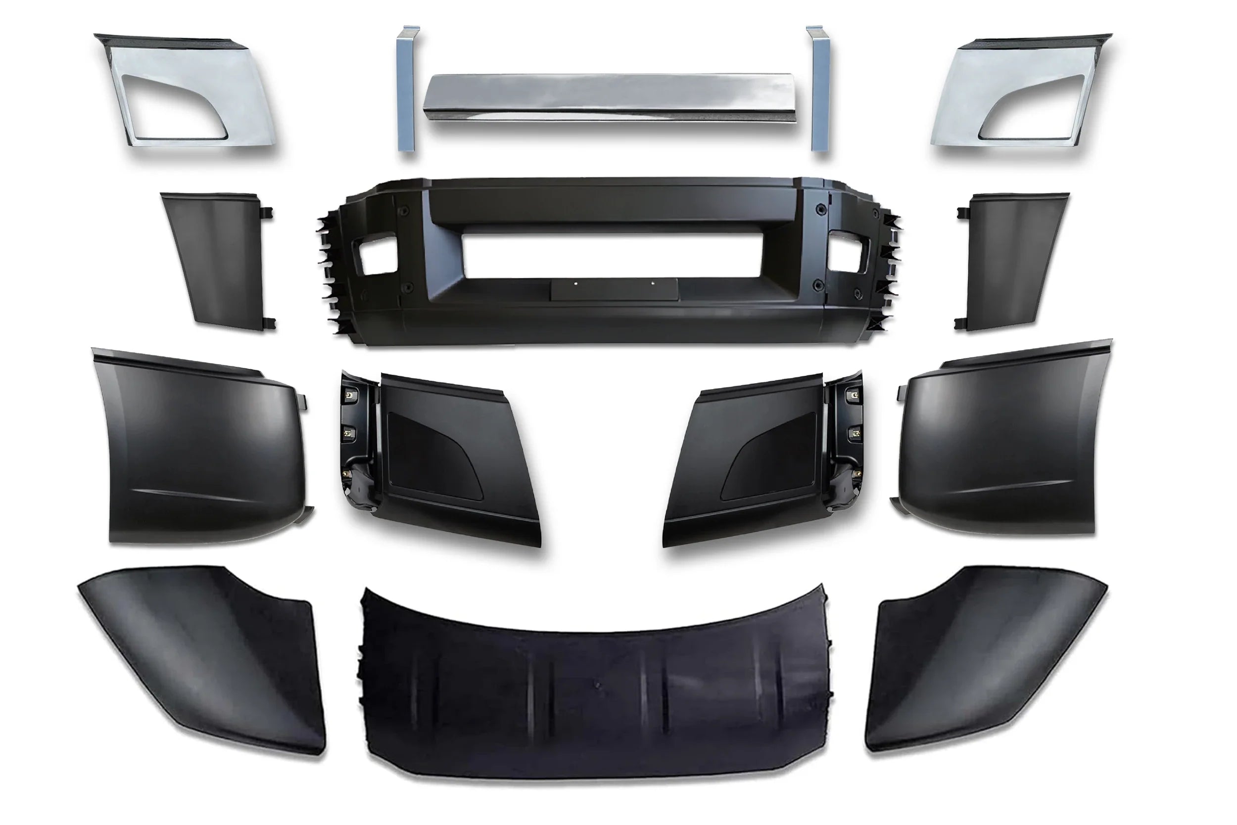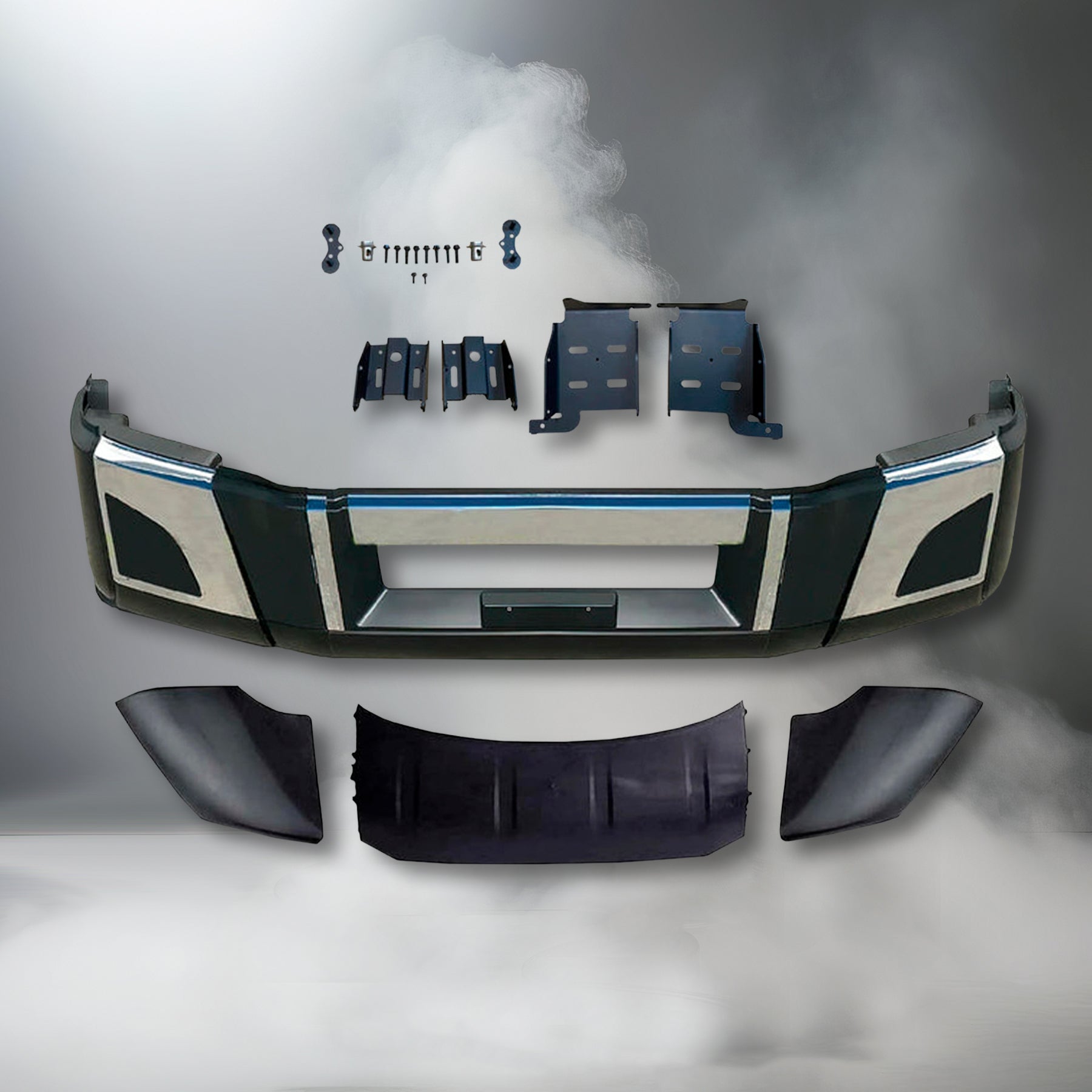 Bumper Set W/o Fog Holes Chrome Trim & Air Flow Deflector & Brackets 2018+ Volvo VNL VNR