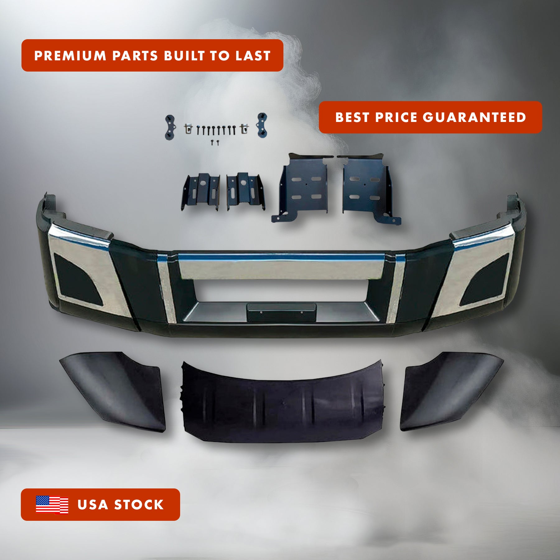 Home Bumper Set W/o Fog Holes Chrome Trim & Air Flow Deflector & Brackets 2018+ Volvo VNL VNR