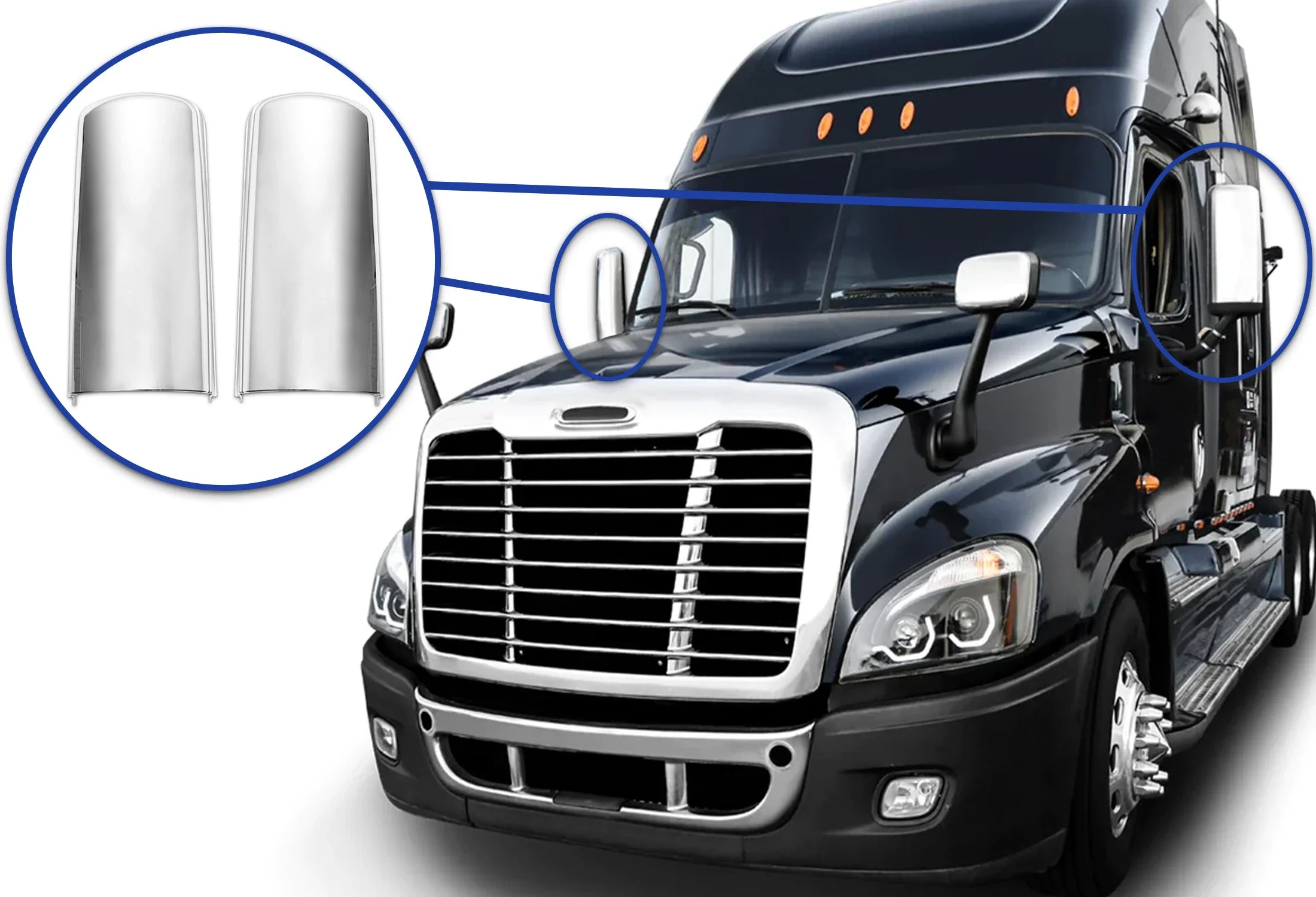 Door Mirror Covers Chrome Set 2008-2016 Freightliner Cascadia 125 113