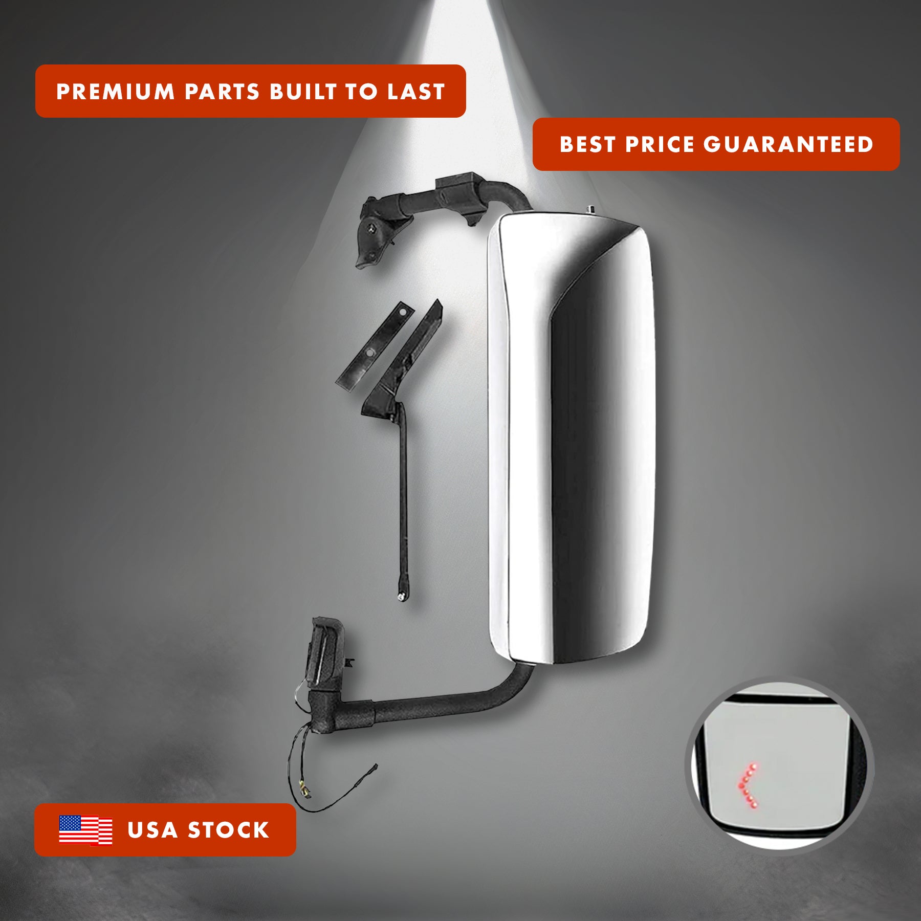 Door Side Mirrors Chrome Power Heated with Turn Indicator, with Arm Bracket