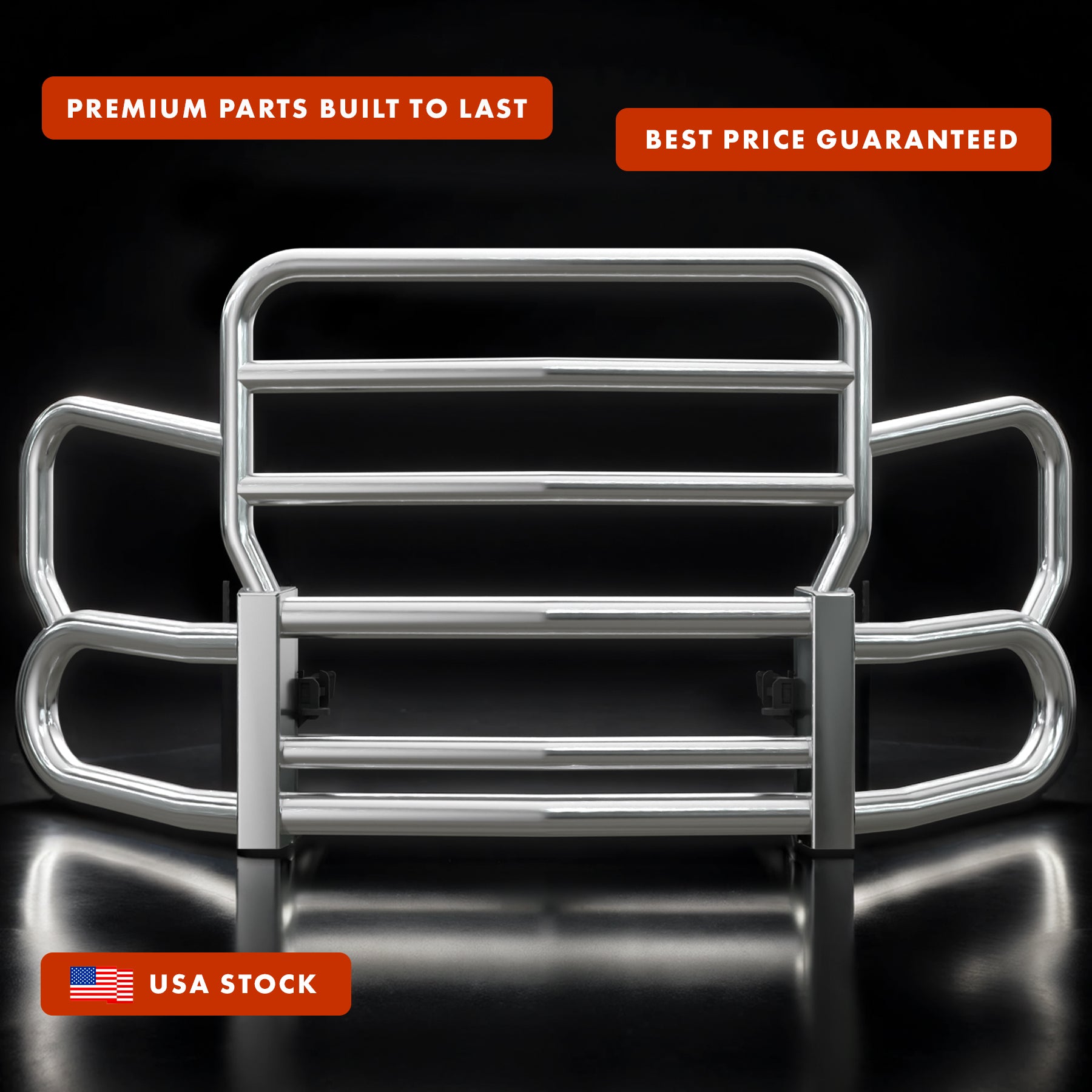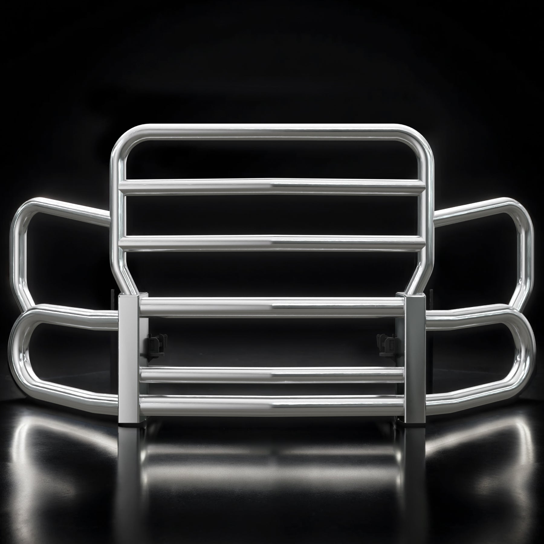 • Heavy-duty mirror-polished grille guard built to handle the toughest road conditions and animal strikes. Ideal for long-haul protection against deer and moose.