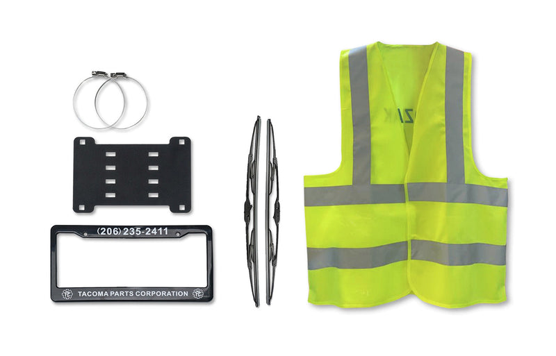 • This listing includes 1x Grille Guard with your choice of lights, Mounting Brackets, License Plate Holder, License Plate Frame, Logo, 2x 22" Windshield Wipers and KOZAK Reflective Vest