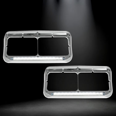 Headlights Bezels Chrome with 12" Clear/White LED Light Strip Bar 2 Pcs For Western Star 4900 -