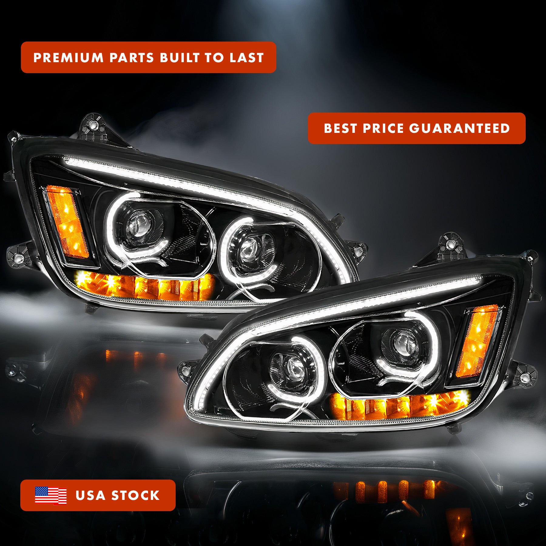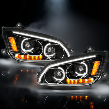 Black Housing LED Headlight Assembly + Turn Signal Dual Projector Headlight Lamp Set