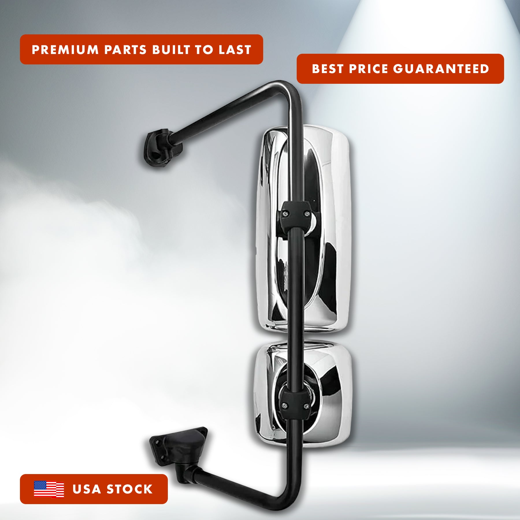• Chrome Door Mirror Assembly w/ Arm for 2004-2016 Freightliner M2, Columbia