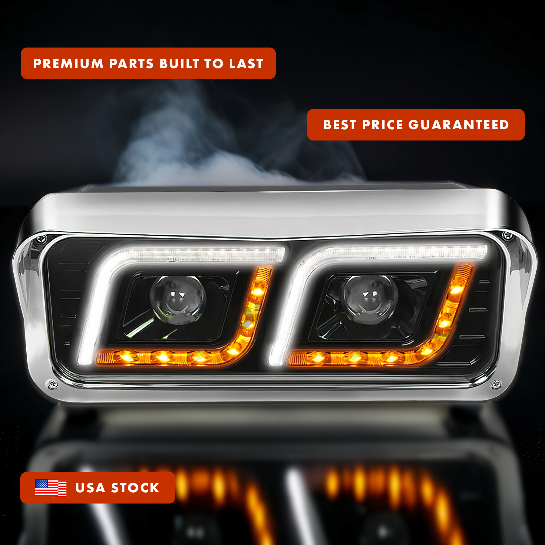 LED DRL DUAL Black Projector Headlight (Driver Left Side) for FREIGHTLINER CLASSIC