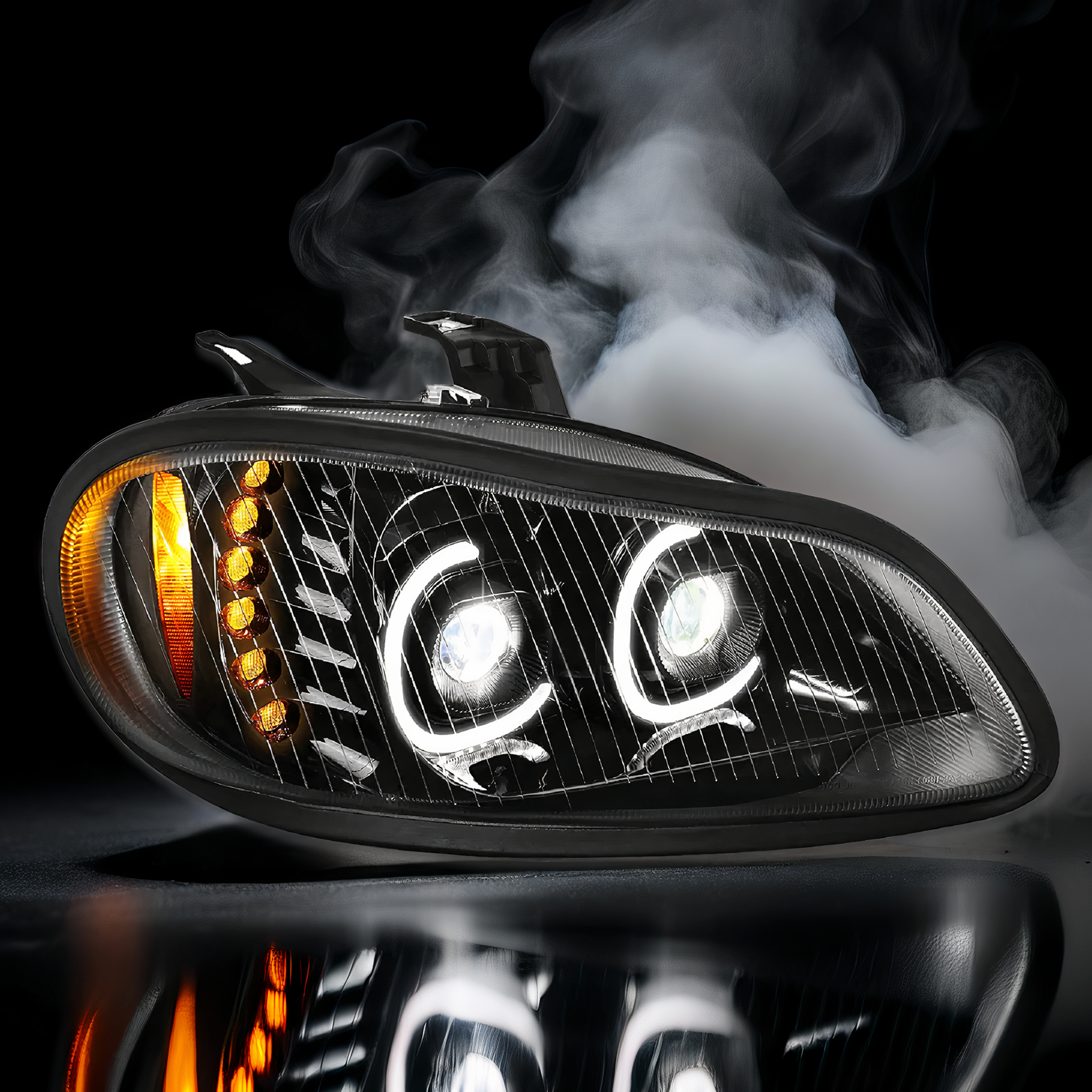 LED Halos+Turn Signal Projector Headlight Lamps 12V