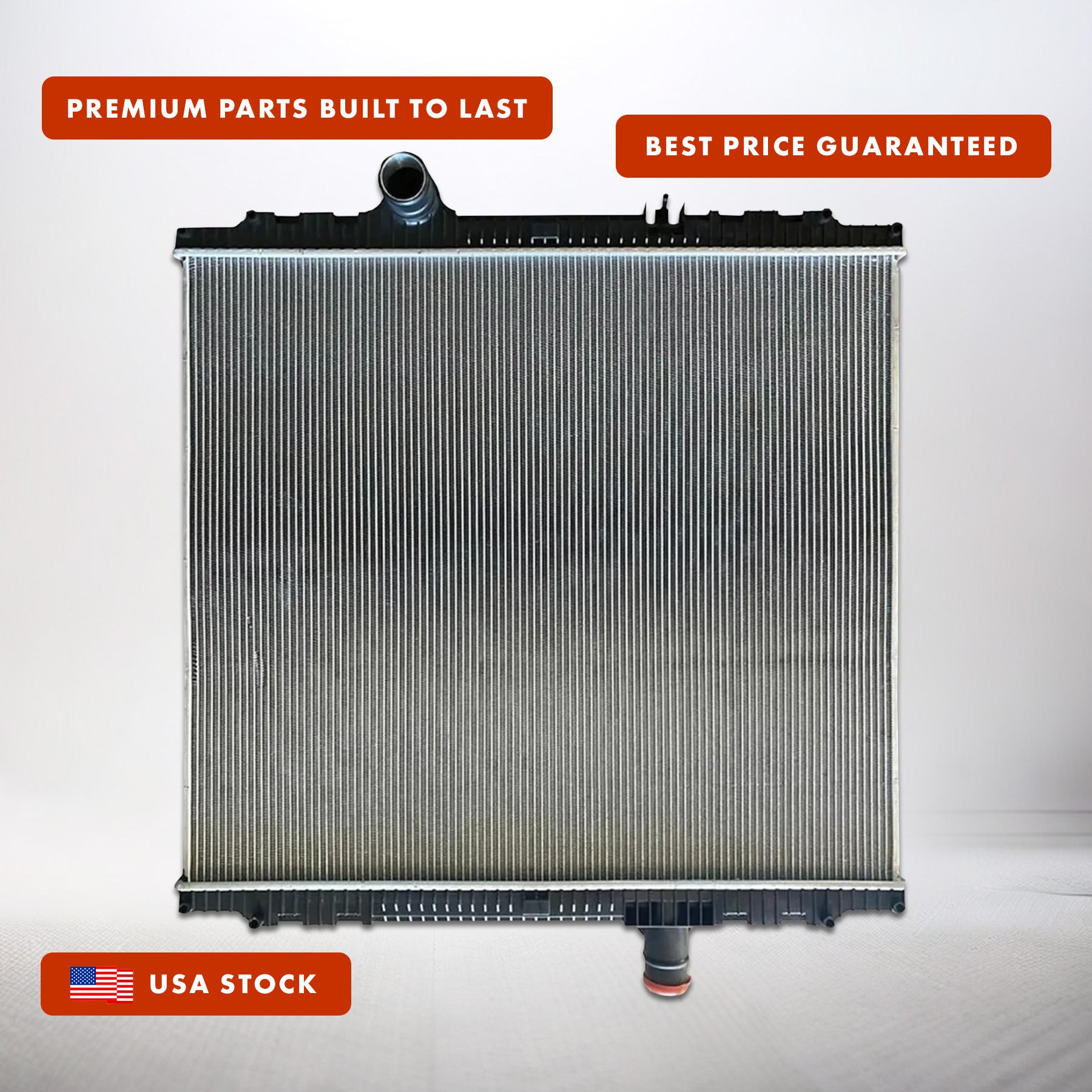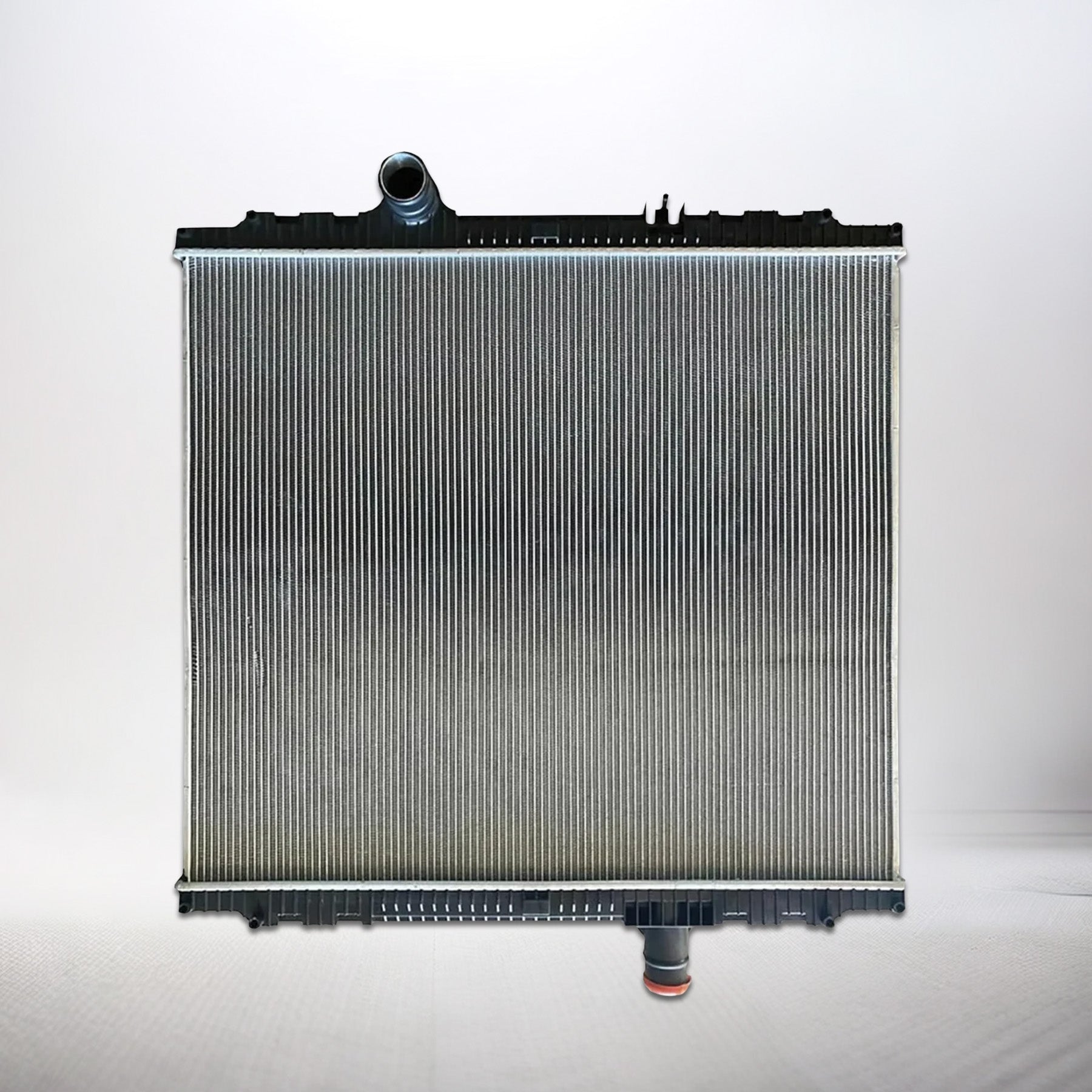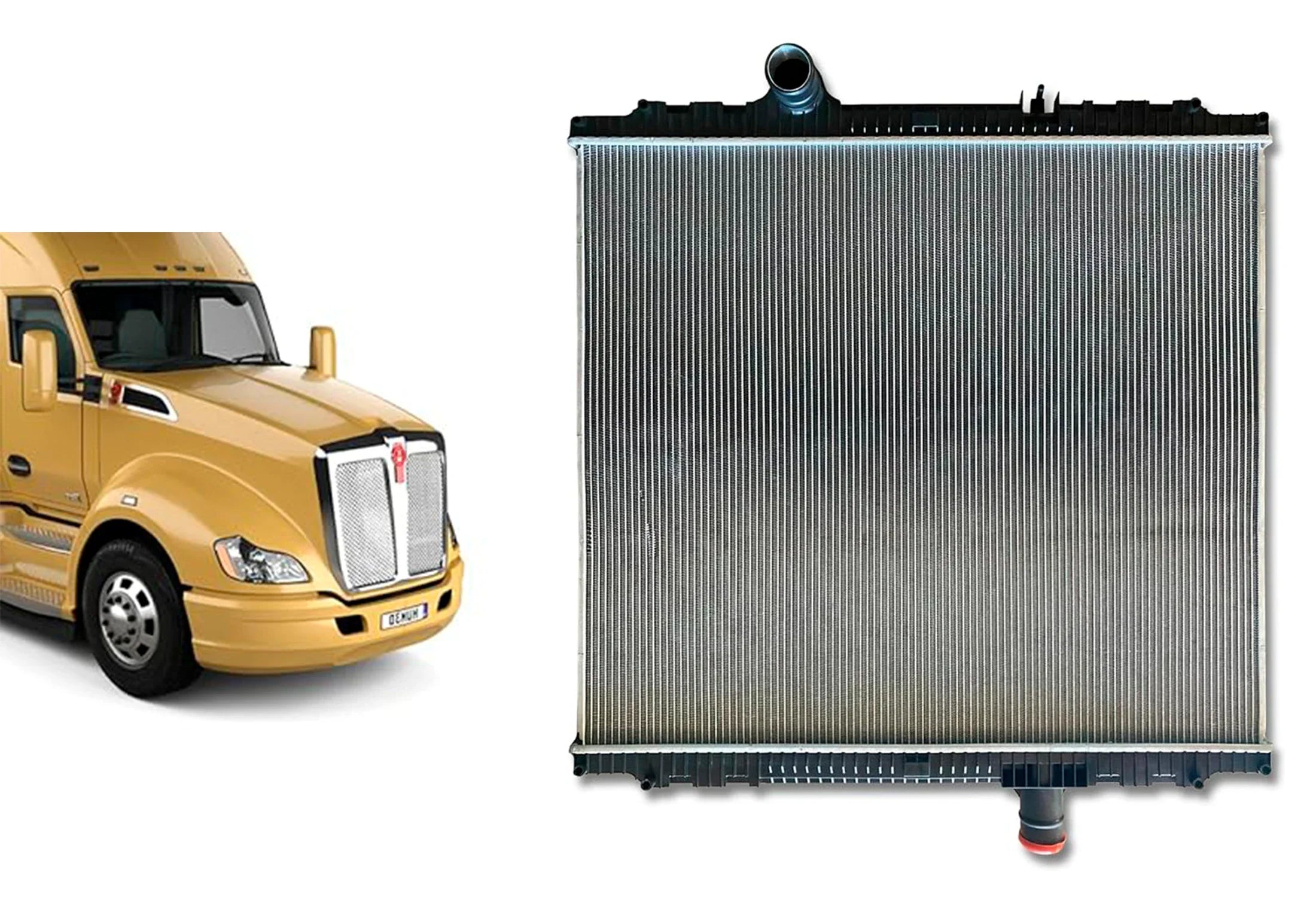 Radiator with Plastic Tanks / Aluminum Core CORE HEIGHT: 34", CORE WIDTH: 39", DEPTH: 2", INLET: 2 1/2" - Upper Left - 13" In, OUTLET: 2 1/2" - Bottom Right - 13" In, OIL COOLER: None