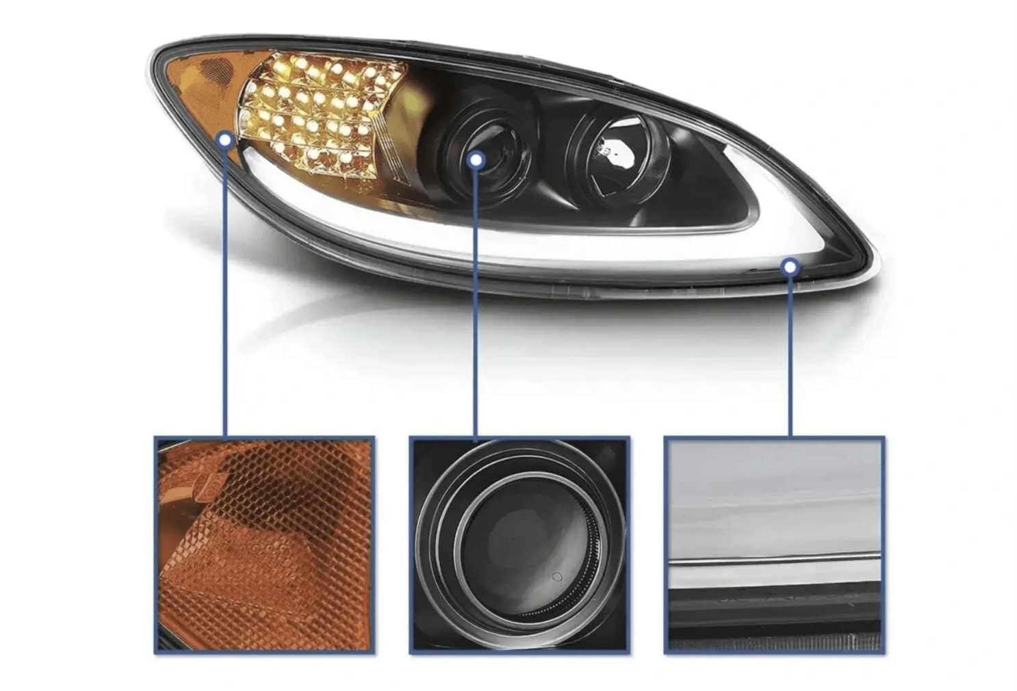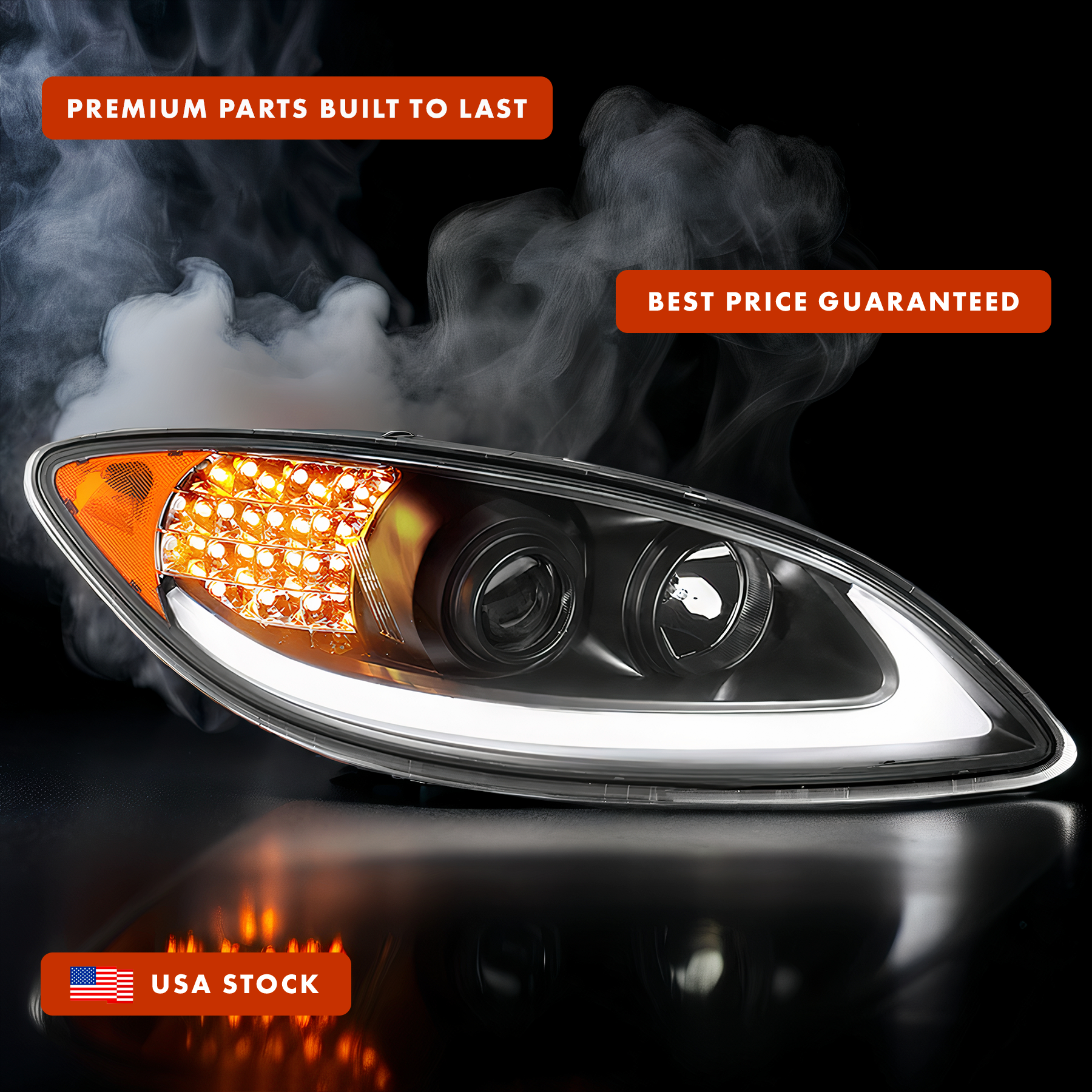 Black LED DRL Glow Bar LED Turn Signal Projector Headlight