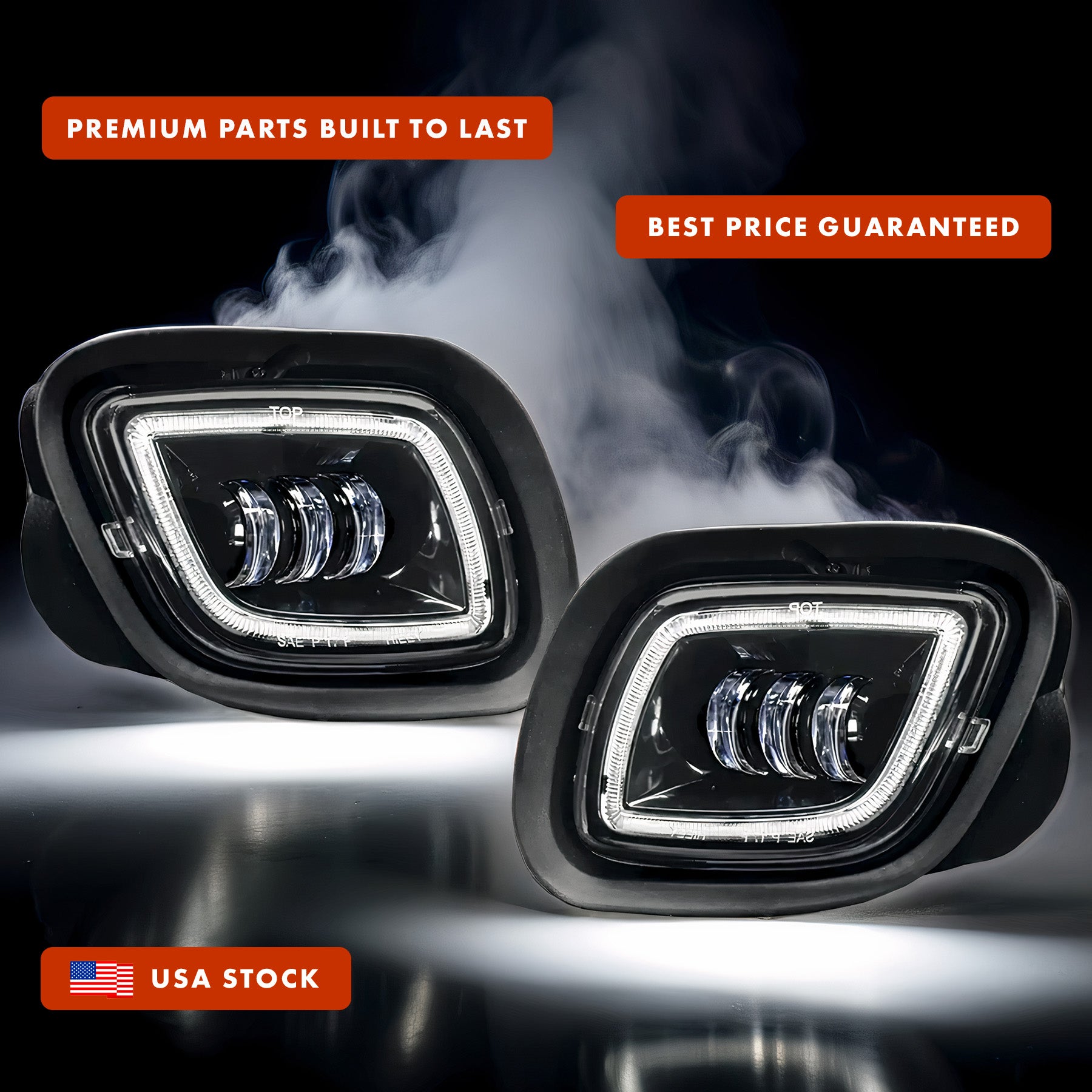 - Black Housing LED Projector + Halo Ring DLR Fog Lights Lamp Set
