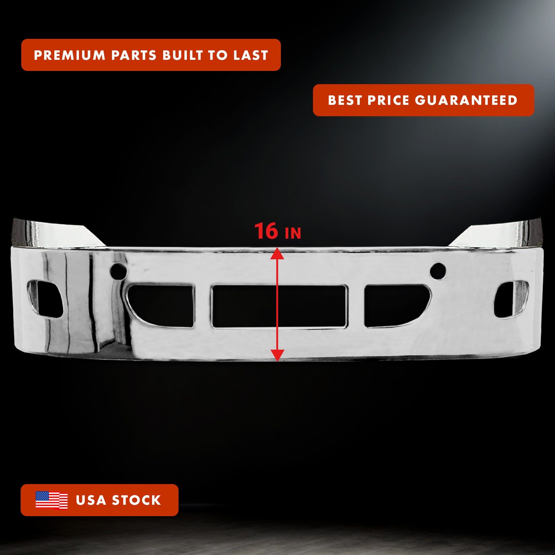Stainless Steel Bumper with Fog Light Holes 16" for Freightliner Cascadia 2008-2018 - Tacoma Parts Corporation